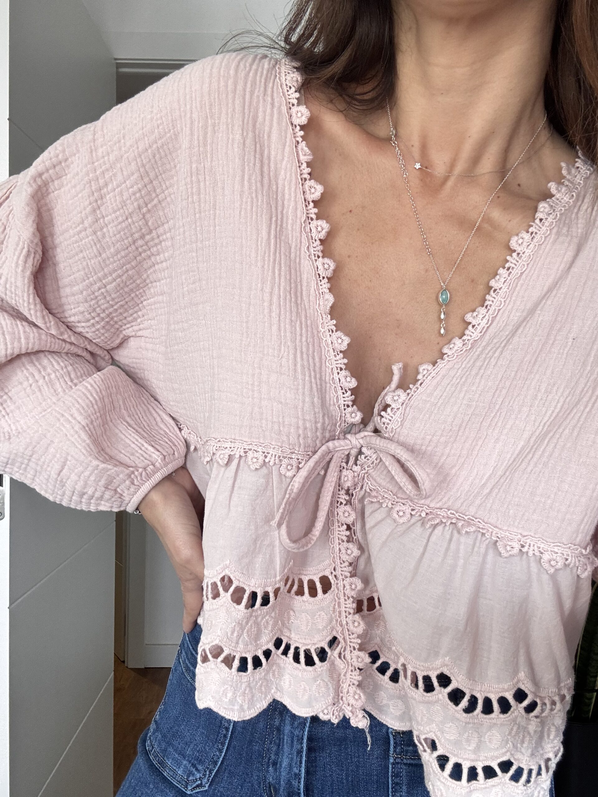 Blusa Romántica Nude – 100% Algodón de Muselina