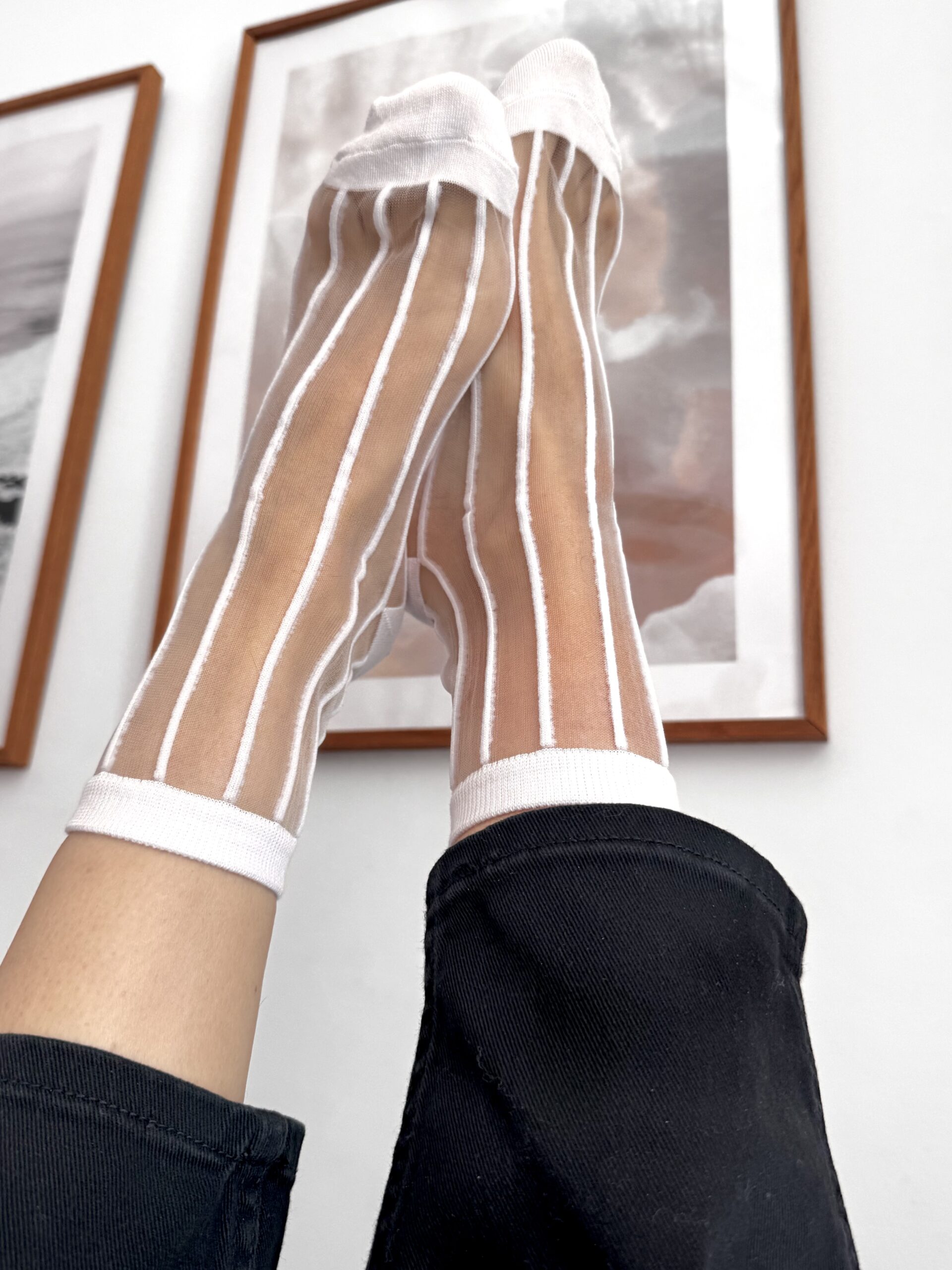 Calcetines de Tul con Rayas Verticales – Delicadeza y Estilo Chic