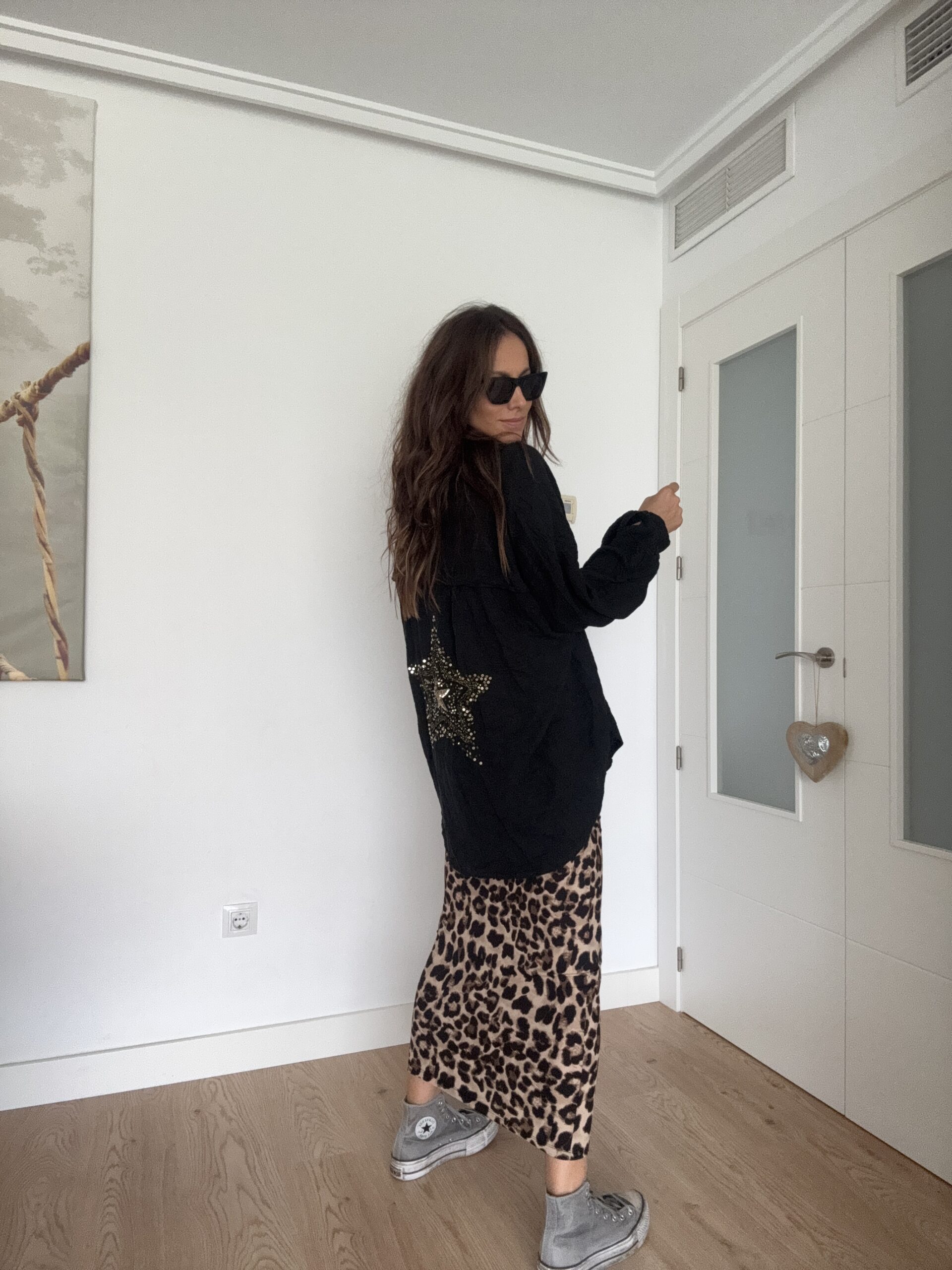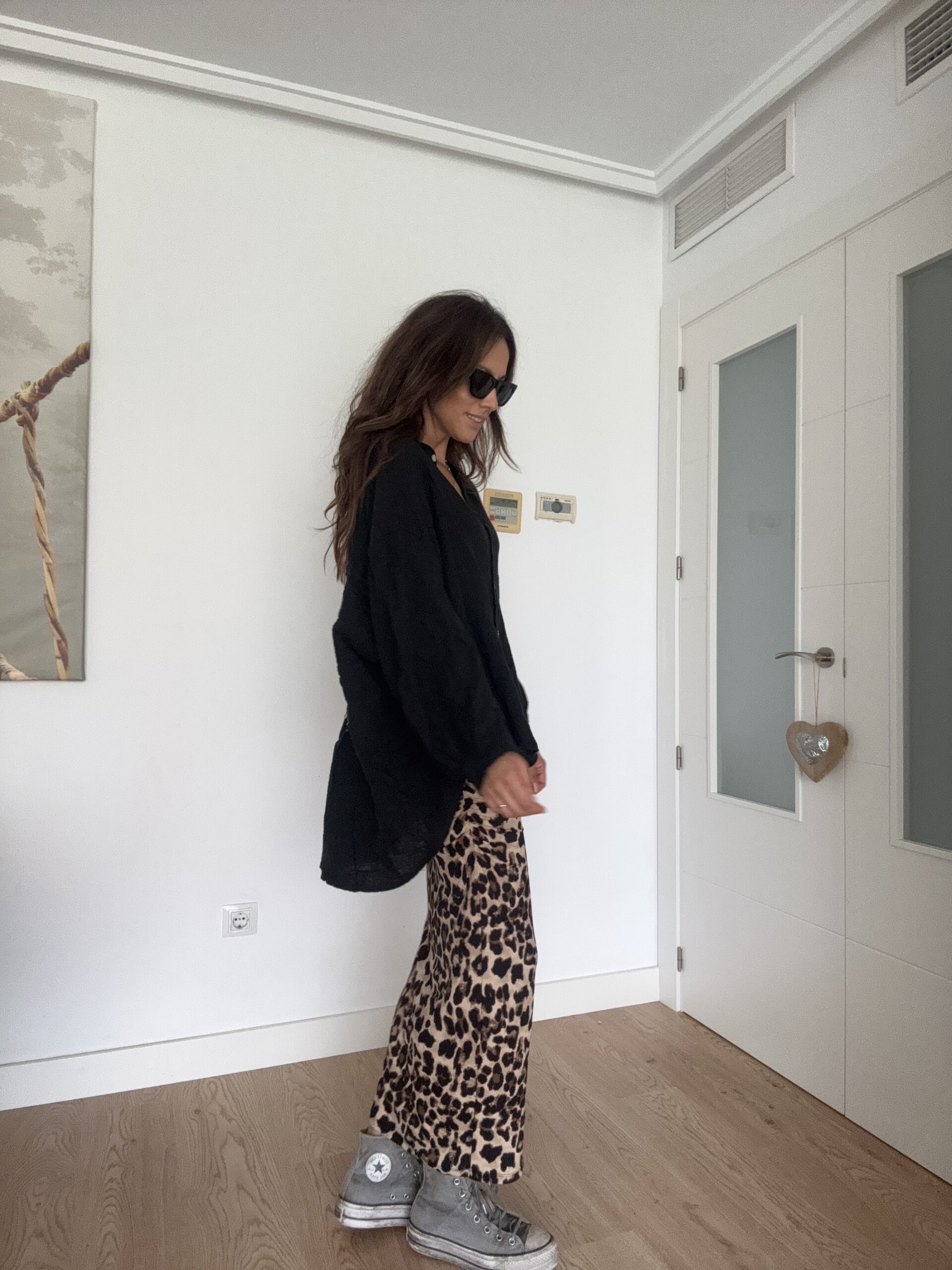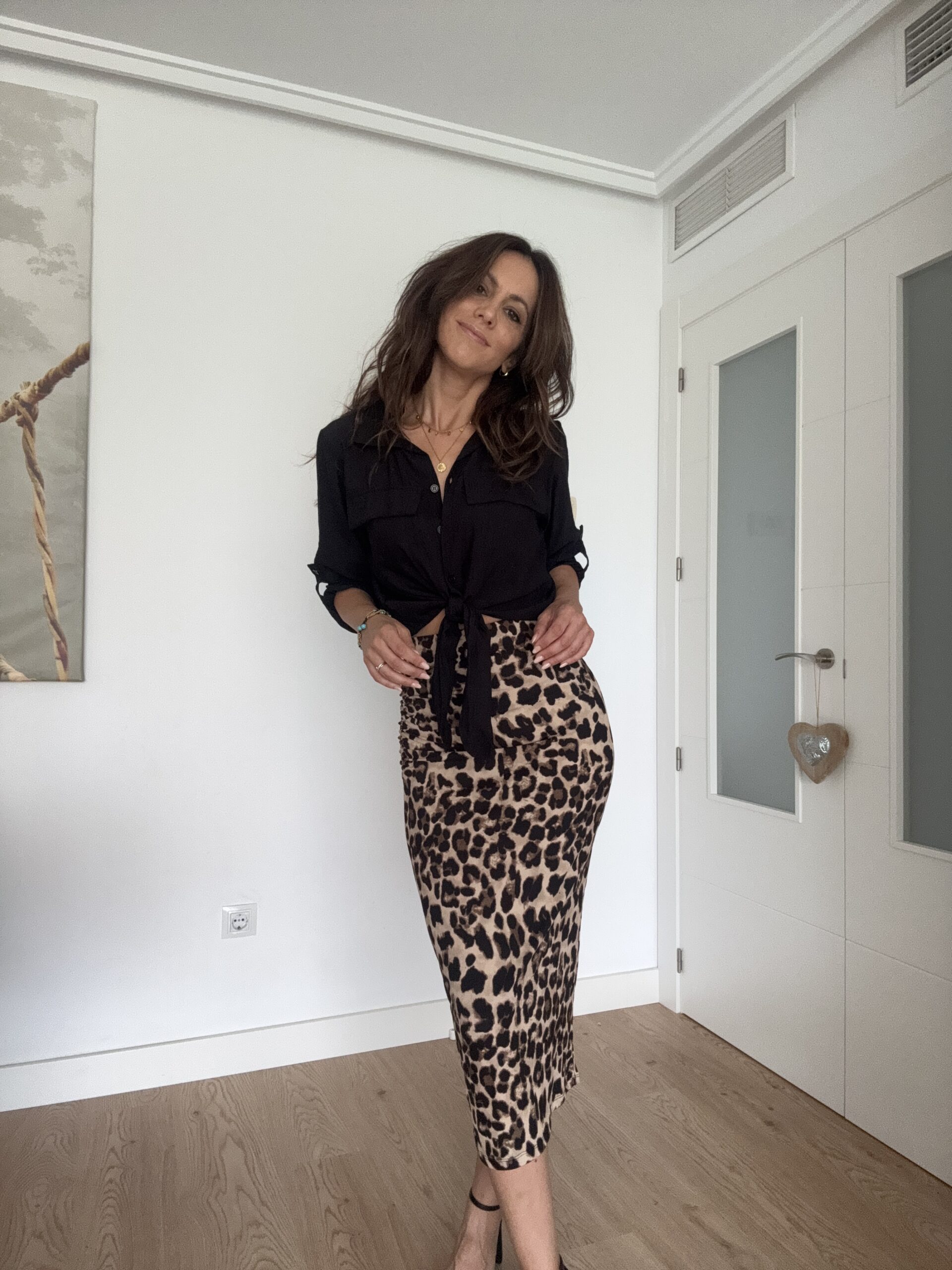 Si te gusta marcar estilo con prendas que sacan tu lado más salvaje y femenino, esta falda animal print es tu próxima favorita. Tiene ese corte midi que tanto favorece y un estampado de leopardo que nunca pasa de moda, con un aire moderno, potente y súper estiloso.