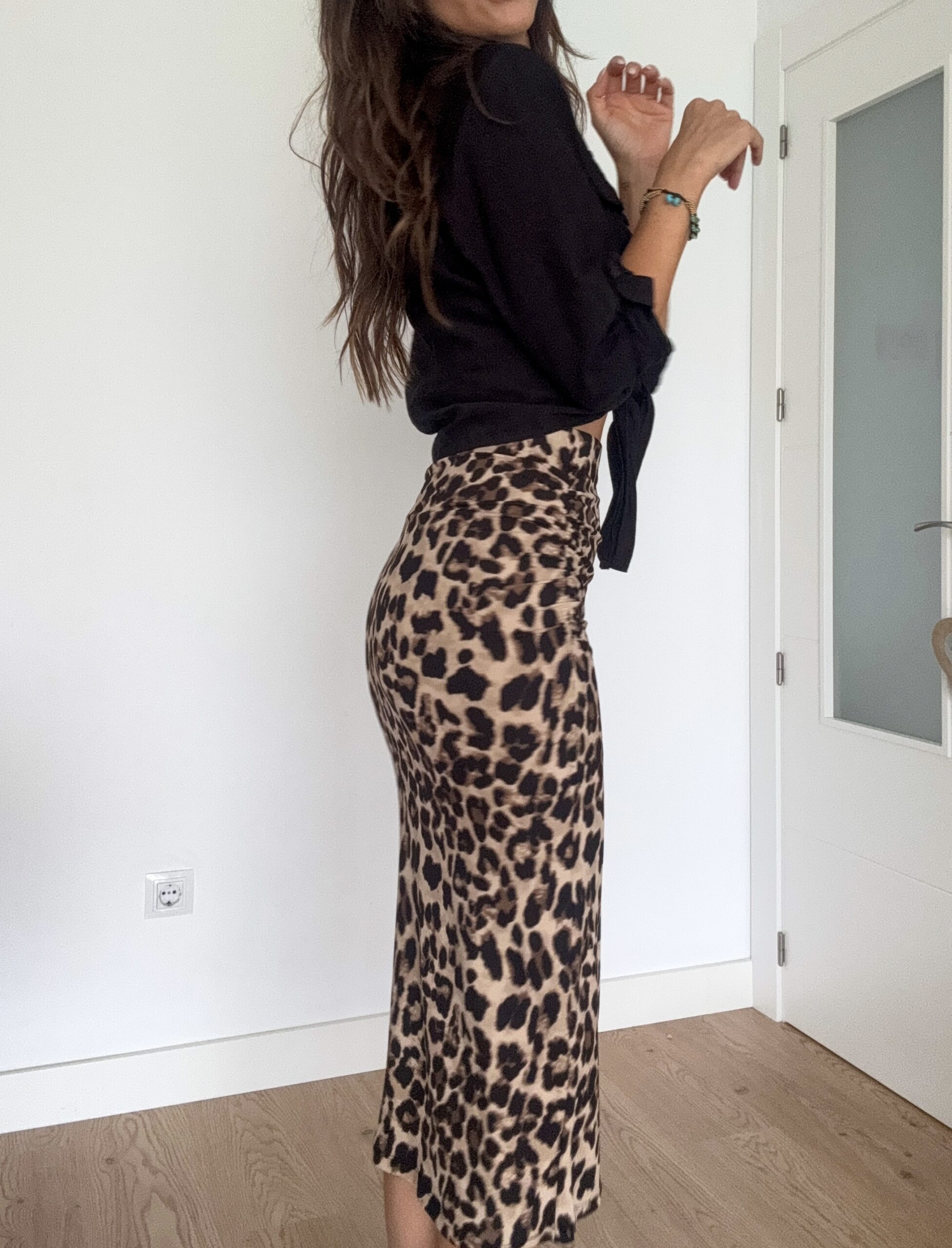 Falda animal print ajustada con drapeado – Estilo boho y muy favorecedora