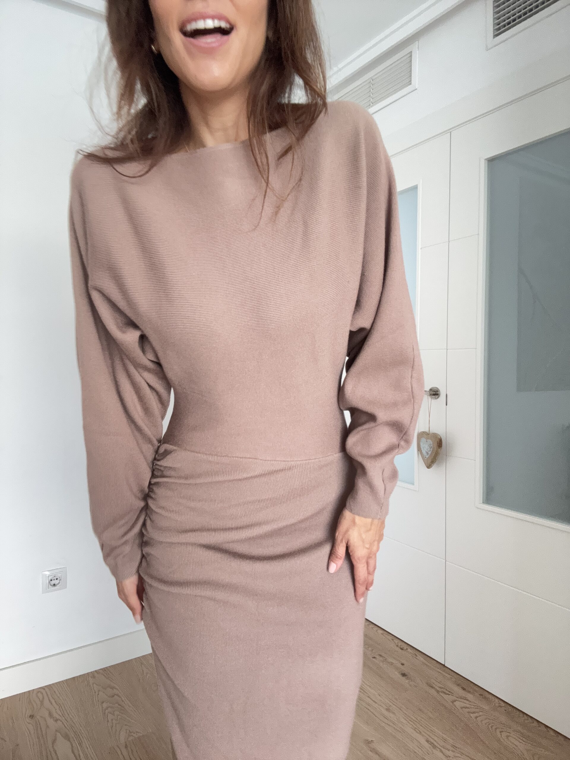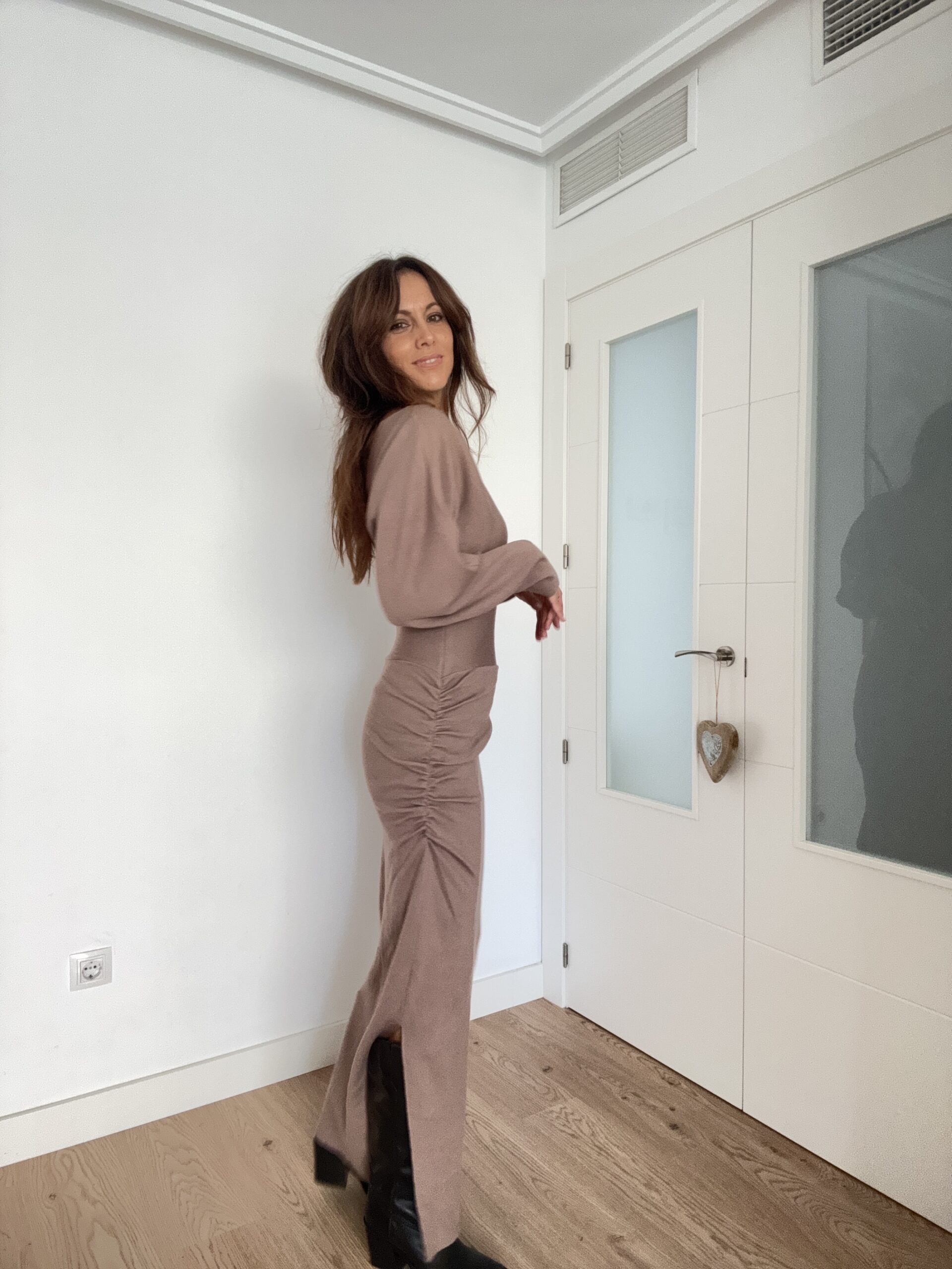 Si eres de las que buscan ropa cómoda, versátil y con personalidad, este vestido de punto con frunces laterales se convertirá en tu nuevo favorito. Una prenda que no entiende de reglas, que se adapta a tu cuerpo y a tu energía, y que te acompaña en todos esos momentos en los que quieres sentirte especial sin complicarte.