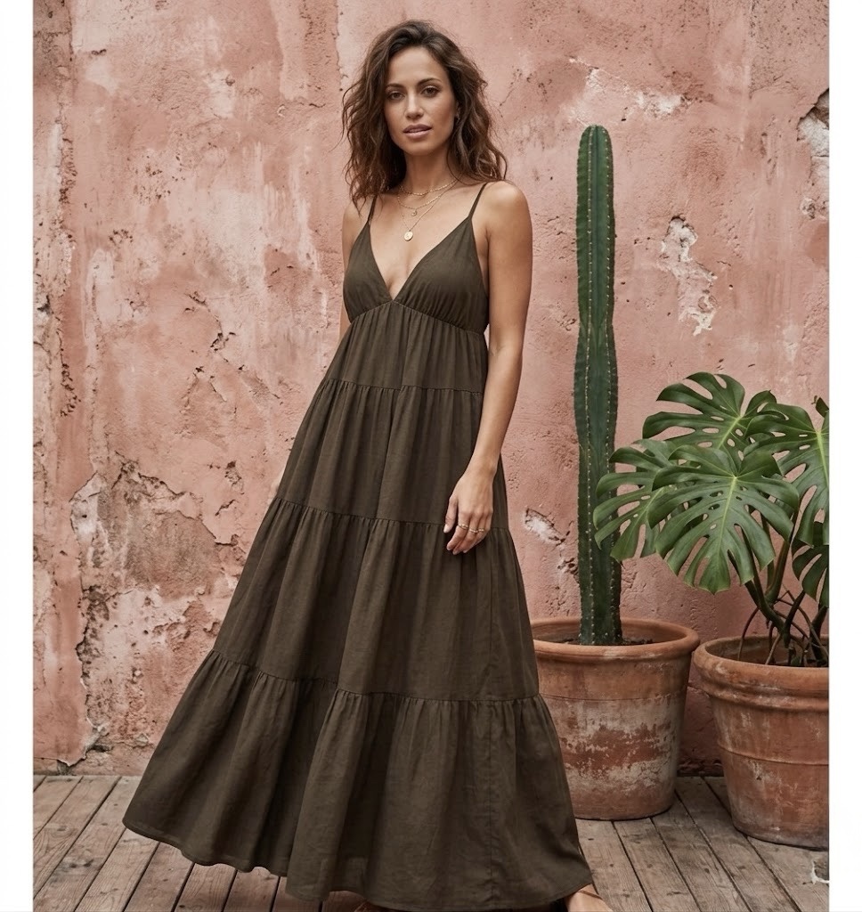 El Vestido Rústico Marrón Chocolate es perfecto para esas clientas que buscan prendas con alma, cómodas pero con estilo. Tiene ese aire relajado que invita a disfrutar del verano con buena vibra.
